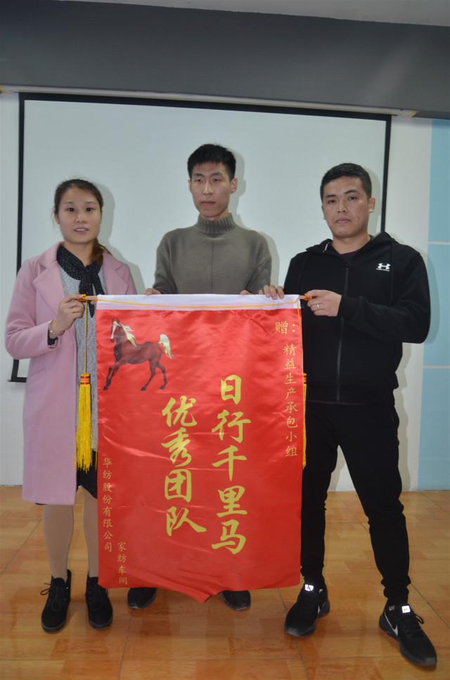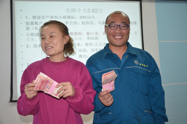 今年6月-10月,家紡車間精益生產(chǎn)小組成員標準操作能量值匯總排名前10位的員工是:340絲光精益生產(chǎn)小組朱兵兵以1585分排名首位,以下依次為:特整精益生產(chǎn)小組楊猛、定型整理精益生產(chǎn)小組趙洪昌、冷染精益生產(chǎn)小組陳長興、340絲光精益生產(chǎn)小組孔慶凡、冷染精益生產(chǎn)小組王士波、320拉幅精益生產(chǎn)小組劉曉斐、320拉幅精益生產(chǎn)小組馬蒙蒙、360定型拉幅機李奎、340絲光精益生產(chǎn)小組李海通。10月份精益生產(chǎn)小組(戰(zhàn)隊)前三甲為:360拉幅精益生產(chǎn)小組、320拉幅精益生產(chǎn)小組、印花精益生產(chǎn)小組。質(zhì)量完成好生產(chǎn)小組是:卷烘精益生產(chǎn)承包小組、印制精益生產(chǎn)承包小組、軋染精益生產(chǎn)承包小組和翻縫精益生產(chǎn)承包小組。340絲光機傘柄箱改造、燒毛機濾芯防護、軋光機尼龍輥處加照明、執(zhí)行管理標準化看板創(chuàng)新等四項提案,為10月份優(yōu)秀提案;“烽火狼戰(zhàn)隊”340絲光精益生產(chǎn)承包小組榮膺紅色千里馬錦旗,同時獲得每人2000元、小組總計10000元的獎金,另有四個小組分別獲得8000元、6000元、4000元、3000元不等的獎金;“質(zhì)量先鋒”卜程程、藺春嶺各獲2000元獎金。