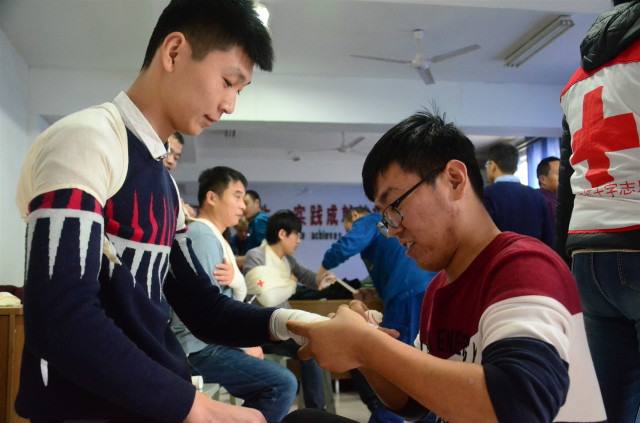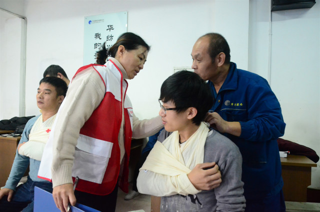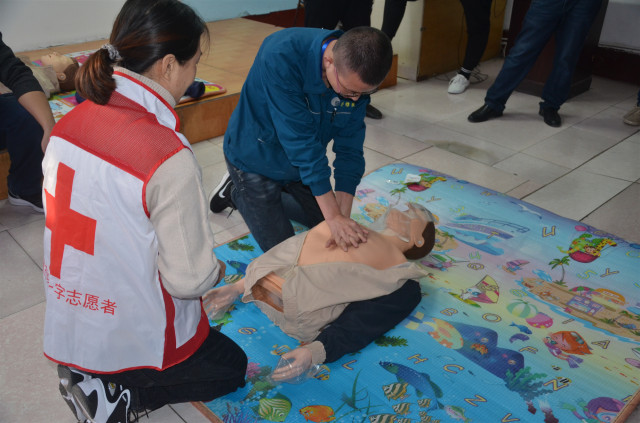 參加培訓(xùn)的安全員通過認真學習和按照要求進行實際操作演練,在學習心肺復(fù)蘇的操作以及AED的使用,創(chuàng)傷救護止血、包扎、固定、搬運等四大技術(shù)的理論與實際操作基礎(chǔ)上,還認真聆聽了中國紅十字會的發(fā)展歷程以及“三救三獻”的工作職責。