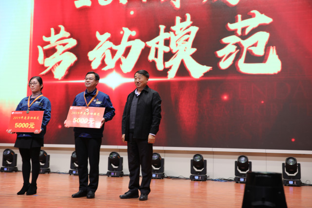 1月4日,在公司年度總結(jié)表彰大會上,公司黨委書記、董事長王力民為獲得“2019年度勞動模范”稱號的兩位員工——花布制版中心設(shè)計主管胡慧慧、動力分公司經(jīng)理秦鴻章頒發(fā)了勞動獎?wù)潞蛣谀*劷?。同時,一部短短幾分鐘反映兩位年度勞模事跡的專題片播出后,得到廣大員工的普遍好評。