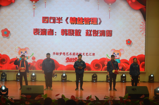1月4日,繼公司舉行持續(xù)深化精益生產(chǎn)年度總結(jié)動(dòng)員大會(huì)之后,精彩紛呈的“同心筑夢(mèng)·贏戰(zhàn)2020——華紡夢(mèng)想藝術(shù)團(tuán)迎新文藝匯演”與廣大員工見面。整場(chǎng)文藝匯演洋溢著吉祥喜慶的氣氛,充盈著昂揚(yáng)向上的旋律,展現(xiàn)出華紡人樂觀、奮進(jìn)的精神風(fēng)貌。