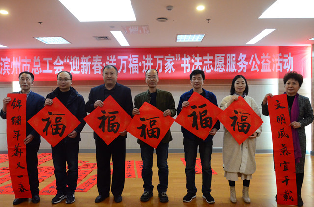 1月29日,市總工會在市職工活動中心舉行“迎新春 送萬福 進萬家”書法志愿服務公益活動舉,邀請到市書法家協(xié)會的5位書法家現(xiàn)場書寫春聯(lián)、福字。公司勞模代表和職工代表與渤?;钊?、交運集團的代表一道,參加此次活動。
