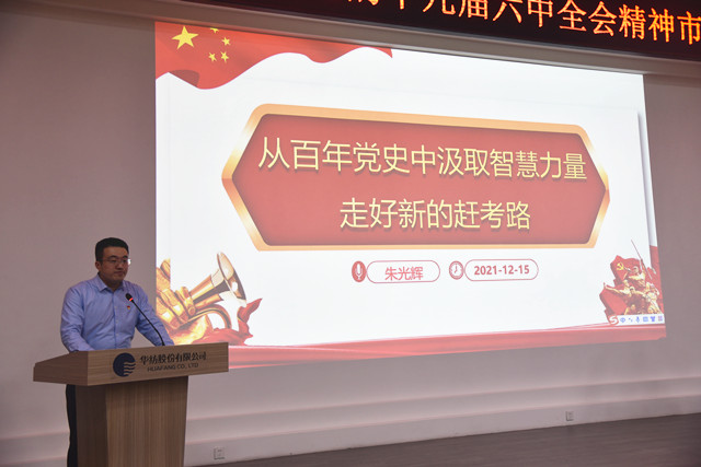 導(dǎo)讀:12月18日,市委宣講團(tuán)成員、市政協(xié)臺(tái)港澳僑和外事委員會(huì)副主任朱光輝來到公司,對(duì)黨的十九屆六中全會(huì)精神進(jìn)行專題宣講。