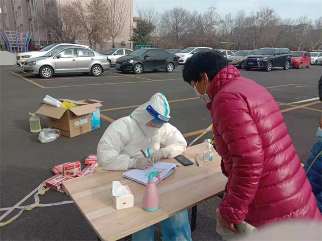 郭冬梅是華紡戰(zhàn)“疫”志愿者中的一員,在本輪疫情中,來(lái)自公司各個(gè)崗位的56名志愿者主動(dòng)請(qǐng)纓,投身一線,與萬(wàn)千醫(yī)護(hù)人員一起為筑牢基層防控的堅(jiān)固壁壘而不辭辛苦。“請(qǐng)有序排隊(duì),出示二維碼,保持一米距離……”公司志愿者們的身影,活躍在各個(gè)核酸檢測(cè)工作現(xiàn)場(chǎng)。他們服從社區(qū)防疫部門(mén)的統(tǒng)一指揮,按照工作分工,引導(dǎo)社區(qū)居民有序排隊(duì)、出示健康碼、掃碼登記信息,為進(jìn)行核酸檢測(cè)的群眾提前做好采樣準(zhǔn)備。