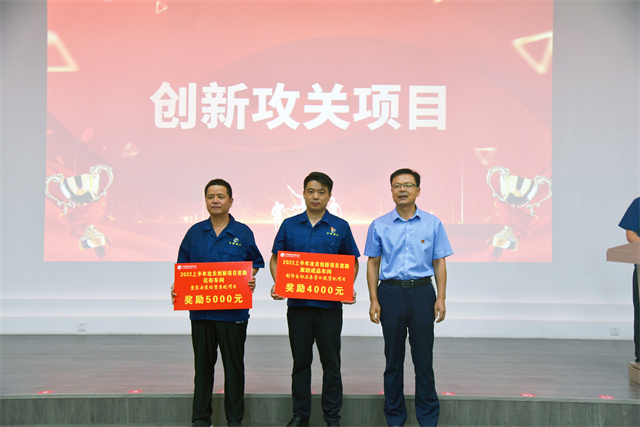 會上,李風(fēng)明宣讀了公司對2022年上半年度CQI項目、創(chuàng)新攻關(guān)成果等表彰決定;盛守祥為CQI項目代表、創(chuàng)新攻關(guān)一等獎項目代表頒發(fā)獎勵牌,總經(jīng)理閆英山為各車間創(chuàng)新攻關(guān)其他受獎項目代表頒發(fā)獎勵牌,李風(fēng)明為質(zhì)量之星、效率之星、工藝操作之星受獎代表頒發(fā)榮譽證書,公司安全總監(jiān)孫中然為現(xiàn)場6S之星、精益提案之星受獎代表頒發(fā)榮譽證書。會議由公司團(tuán)委書記陳冰主持。