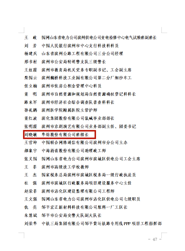 導(dǎo)讀:12月12日,山東省總工會(huì)辦公室發(fā)布了《關(guān)于公布2022年度山東省新時(shí)代崗位建功勞動(dòng)競賽標(biāo)兵個(gè)人的通知》,公司劉曉敏獲“2022年度山東省新時(shí)代崗位建功勞動(dòng)競賽標(biāo)兵個(gè)人”。