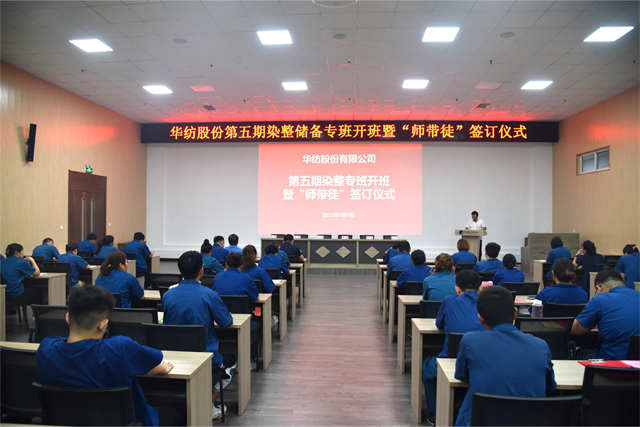 公司舉辦染整儲(chǔ)備專班開班暨“師帶徒”簽訂儀