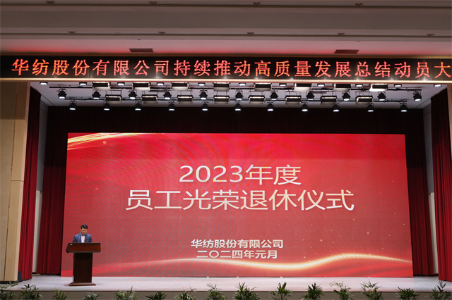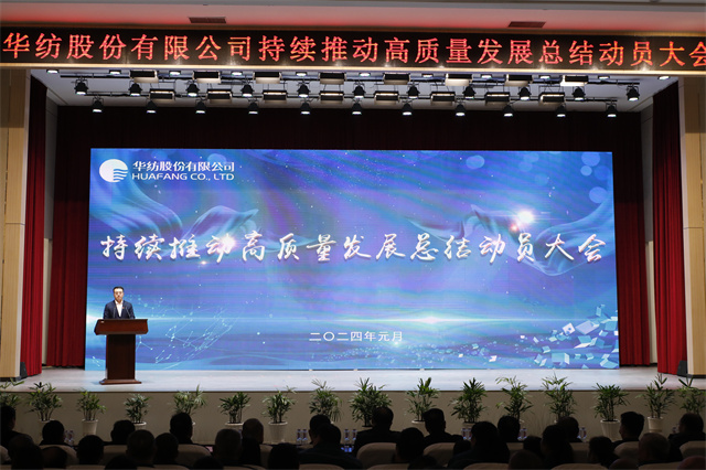 1月1日,華紡股份有限公司持續(xù)推動(dòng)高質(zhì)量發(fā)展總結(jié)動(dòng)員大會(huì)在會(huì)議中心一號(hào)會(huì)議室隆重召開(kāi)。市國(guó)資委四級(jí)調(diào)研員王克寧,公司黨委書(shū)記、董事長(zhǎng)盛守祥,公司黨委、行政班子成員以及員工代表等五百余人齊聚一堂,總結(jié)2023榮光,展望2024宏圖,表彰優(yōu)秀、激勵(lì)先進(jìn)、凝聚共識(shí)、匯聚力量,以昂揚(yáng)的姿態(tài)譜寫(xiě)公司高質(zhì)量發(fā)展的新篇章。