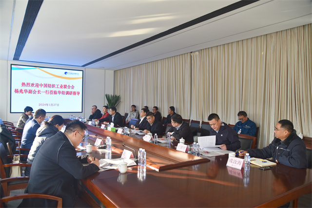 1月27日,中國紡織工業(yè)聯(lián)合會副會長楊兆華一行到華紡股份調(diào)研指導工作。市工信局黨組書記、局長姚振祥,濱城區(qū)副區(qū)長袁見,公司黨委書記、董事長盛守祥陪同調(diào)研。