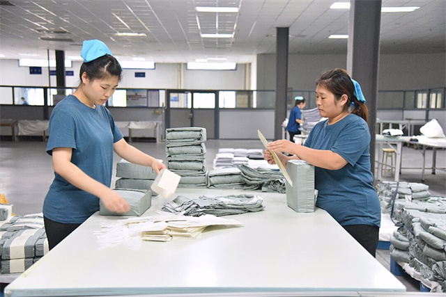 在高強度的工作環(huán)境下,王營和吳志叢不僅沒有放慢腳步,反而更加注重細節(jié),力求完美,確保每一件產(chǎn)品都達到卓越的品質(zhì)標準。最終,憑借她們不懈的努力與頑強的拼搏,完成天絲枕套熨燙4000件,整疊包裝枕套1600對,以兩人之力完成了相當于五至六人的工作量。