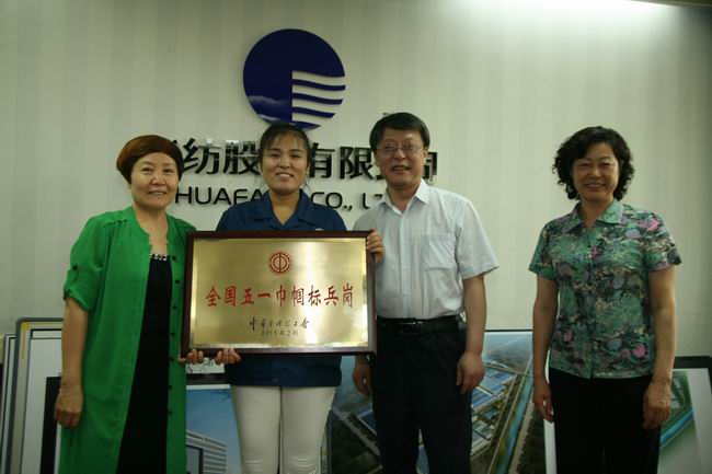 日前,濱州市總工會(huì)常務(wù)副主席耿慶東、副主席趙敏、女工部部長(zhǎng)左麗華一行來到公司,為榮膺“全國(guó)五一巾幗標(biāo)兵崗”的服裝車間縫制工段代授獎(jiǎng)牌,并與該工段主管李艷艷進(jìn)行了簡(jiǎn)短的工作座談,公司副總經(jīng)理邱淑芳、工會(huì)主席鄭安江參加授牌與座談。