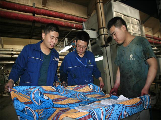 3月17日,花一車間南印制甲班班長吳樂、印花機機長李彬彬和副機長牟石磊,圍繞當班印制產品的質量展開改進分析,力求使本班產品印制提升到一個更好的水平?;ㄒ卉囬g、花二車間所生產的產品,絕大比重為出口國外市場,在非洲等傳統市場占有重要的市場份額和良好的市場信譽,靠的即是穩(wěn)定而過硬的產品質量。花一車間、花二車間堅持“產品為王、質量制勝”的思想,使員工的質量意識得到持續(xù)增強。他們普遍認識到,質量是一個旅程,永遠沒有終點。