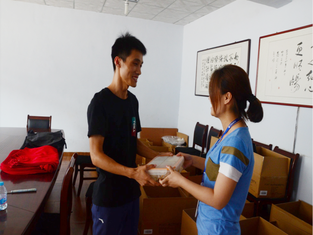 “吳青凱,生日快樂”,正在車間整理貨物的服裝公司業(yè)務(wù)員吳青凱聽到有人叫自己,一回身,只見營銷體系團支部書記姜琳紅把一份工作餐遞到手里??粗矍暗捏@喜,吳青凱開心的說:“原來今天是我的生日啊,謝謝公司對我們單身員工的關(guān)愛”。