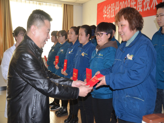 總工程師羅維新宣讀了《關(guān)于對2018年度綜合評比獲獎(jiǎng)團(tuán)隊(duì)及個(gè)人的表彰決定》和《關(guān)于對染整專業(yè)技術(shù)培訓(xùn)班(第七期)劉江等15人準(zhǔn)予結(jié)業(yè)的通報(bào)》;黨委書記、董事長王力民為獲得表彰的優(yōu)秀團(tuán)隊(duì)面三車間技術(shù)團(tuán)隊(duì)頒發(fā)獎(jiǎng)狀;總經(jīng)理閆英山為27名優(yōu)秀技術(shù)人員和15名輪訓(xùn)班結(jié)業(yè)人員頒發(fā)相應(yīng)證書。優(yōu)秀技術(shù)人員代表韓延衛(wèi)和優(yōu)秀打樣員代表張齊先后發(fā)言。