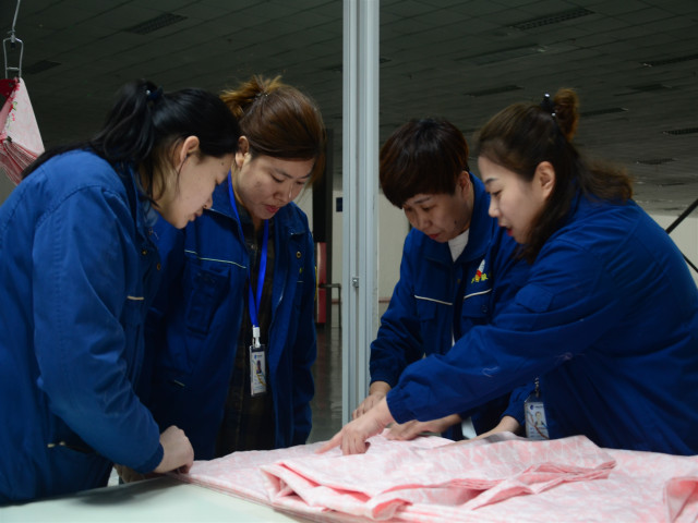 公司家紡成品車間是一個以女工為主導的團隊,女工比例達72%,女工分布在管理、技術(shù)、生產(chǎn)操作等各個崗位。她們在日常生產(chǎn)工作中以追求優(yōu)質(zhì)高效為目標,在每個生產(chǎn)環(huán)節(jié)嚴格執(zhí)行精益生產(chǎn)的標準與流程,不斷創(chuàng)造出新的生產(chǎn)紀錄。