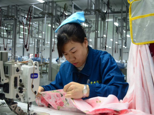 今年27歲的周之平是公司家紡成品車(chē)間吊掛二班的一名縫制工,以目前正在生產(chǎn)的一款被罩產(chǎn)品為例,她每天日均產(chǎn)量達(dá)到了220件,在公司同序列工種中保持領(lǐng)先。周之平進(jìn)入公司已滿九年時(shí)間,生產(chǎn)實(shí)踐的磨練使她成長(zhǎng)為一名出色的生產(chǎn)能手,不僅活干得利索,而且質(zhì)量指標(biāo)也是數(shù)一數(shù)二的。周之平說(shuō):“做這份工作,不論從哪個(gè)角度說(shuō),都要努力做好,不能讓工夫白費(fèi)。”